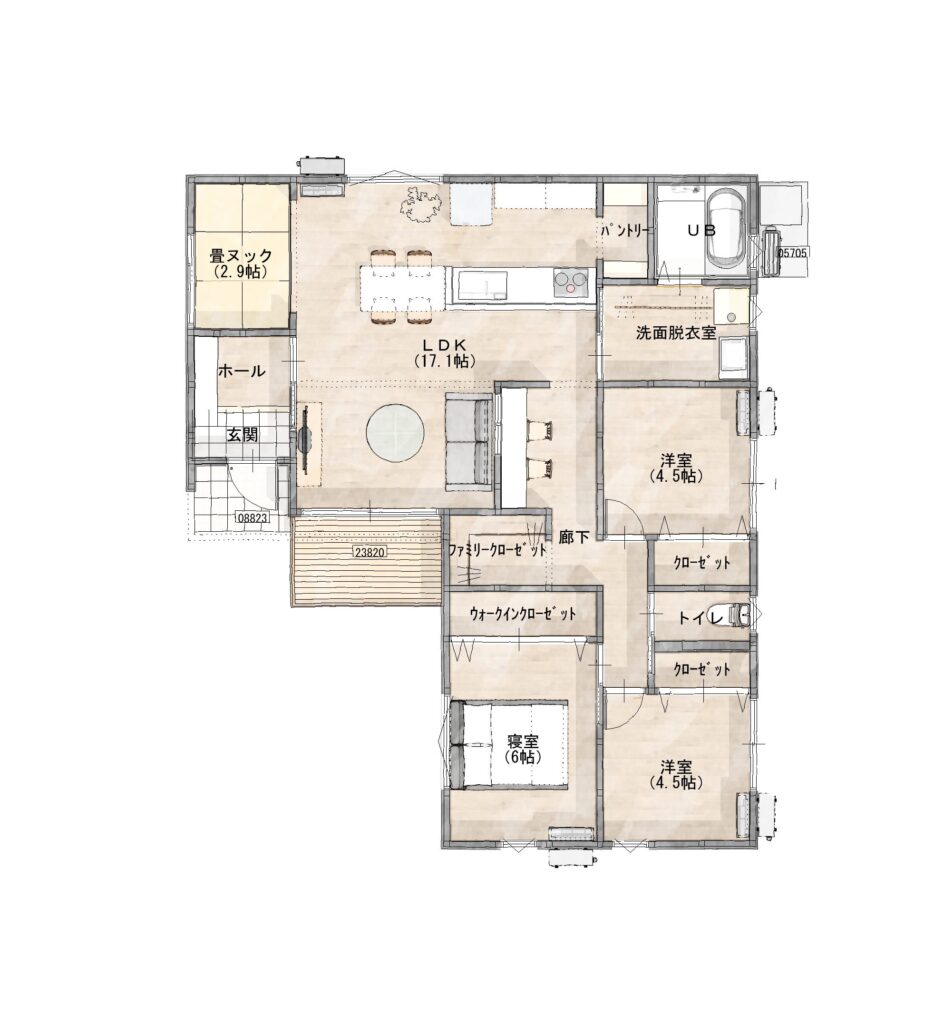 リビングの一角にはスタディースペース、寝室近くには家族で使えるファミリークローゼットなど、工夫の詰まった間取りとなっています。